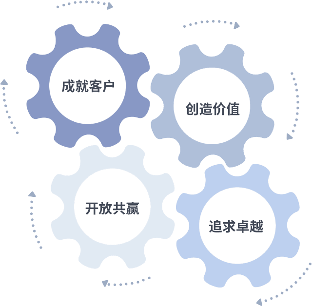 成就客户是一切决策的出发点,,,,创造价值是衡量所有工作的标准,,,追求卓越是永信贵宾会217做事做人的态度,,,,开放共赢是永信贵宾会217的格局也是最终的结果。。。。价值观的齿轮环环相扣,,推动着组织里的每个人不断向前。。